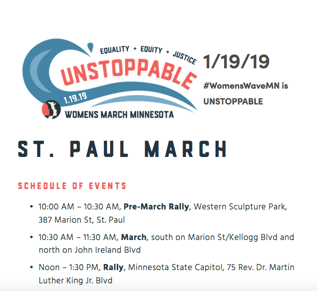 This Saturday is the 2019 Women’s March! Click here for more information, there are Green Line light rail stops at both ends of the march.