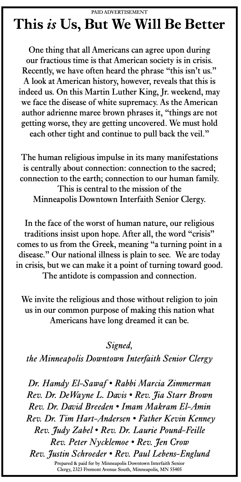 An interfaith group of Twin Cities faith leaders has come together to share a powerful…