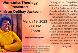 As we work to further the Kin-dom of God, here and now, many people of faith are getting tired because the institution of the Church has caused so much pain to so many. Join us and Lillian for a time to learn and renew ourselves as we work to be a Church we are proud of.
