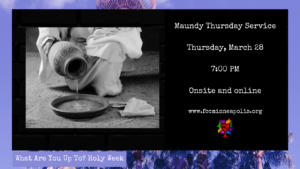 Join us for Holy Week and Easter – we will again have a slate of services and activities leading up to Easter Sunday: