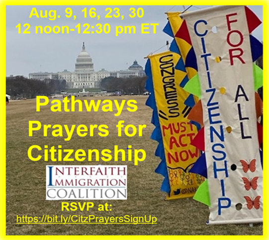 Join “Pathways Prayers for Citizenship” each Monday 12-12:30pm ET during August Recess-on Aug. 9, 16, 23 & 30-to hear voices of DACA, TPS, farm workers & essential workers, pray, & learn how you can TAKE ACTION for #Citizenship4All #DACA #