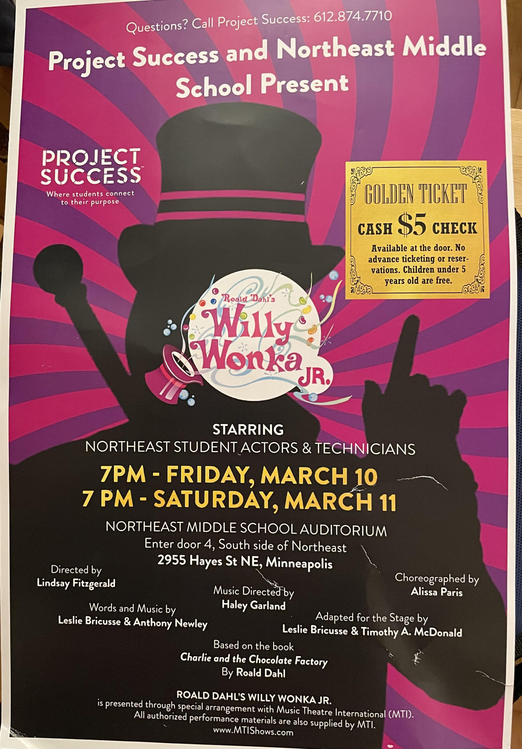 JIMMY is performing in Northeast Middle School/Project Success’ production of “Willy Wonka and the Chocolate Factory”.