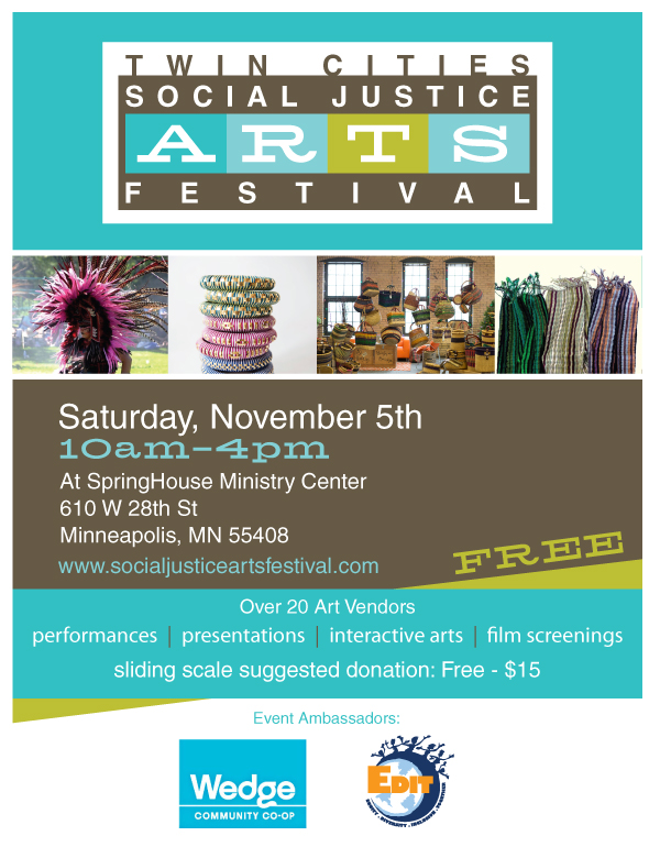 Once again, SpringHouse will be hosting the Twin Cities Social Justice Arts Festival! The Twin Cities Social Justice Arts Festival is an event created by EDIT, a local social justice youth arts nonprofit organization. Learn more about EDIT here.