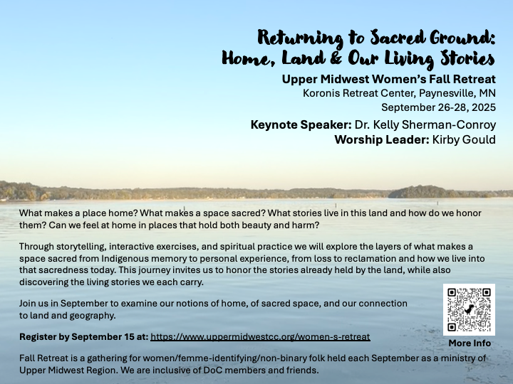 What makes a place home? What makes space sacred? Through storytelling, interactive exercises, and spiritual practice, we will explore the layers of what makes a space sacred from Indigenous memory to personal experience, from loss to reclamation, and how we live in that sacredness today. The retreat is a gathering for women/femme-identifying/non-