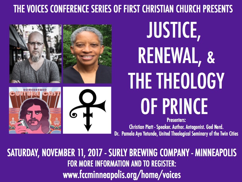 Come join us on November 11 for a fun, exciting, and sometimes controversial time of lecture, discussion, and appetizers. Plus, Christian will be taping his Homebrewed Christianity CultureCast podcast with special guest Dr. Pamela Ayo Yetunde from United Theological Seminary of the Twin Cities. Their discussion topic is around her latest project at the seminary, Theology of Prince, her own exploration of Prince’s theology/spirituality (which she’s done some writing and speaking about), and why this is an important project in our current cultural milieu. You can learn more about her project here. And, this event is taking place at Surly Brewing – Minnesota’s largest destination brewery!